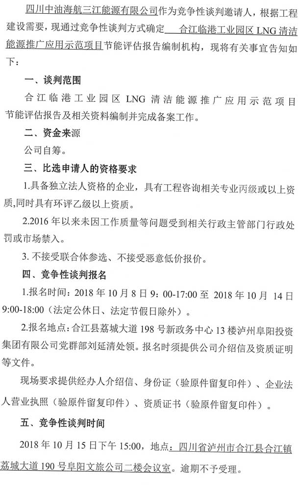 合江臨港工業(yè)園區LNG清潔能源推廣應用示范項目節能評估報告編制單位競爭性談判公告.doc
