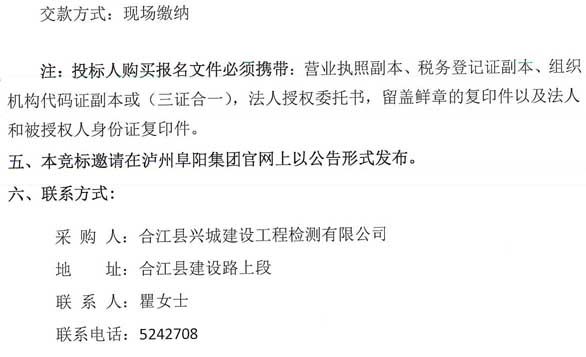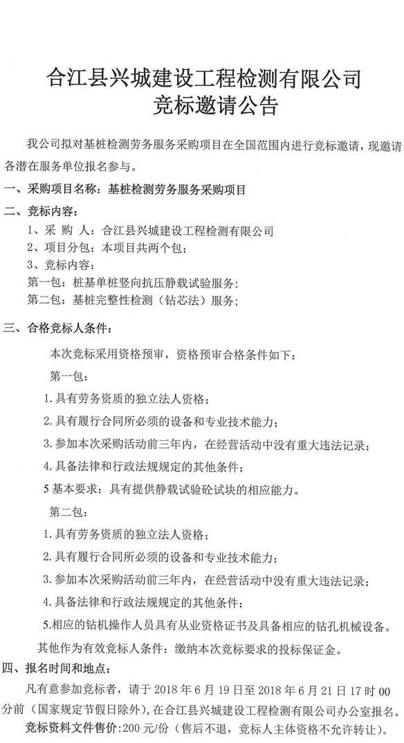 邀標公告:合江縣興城建設工程檢測有限公司競標邀請公告