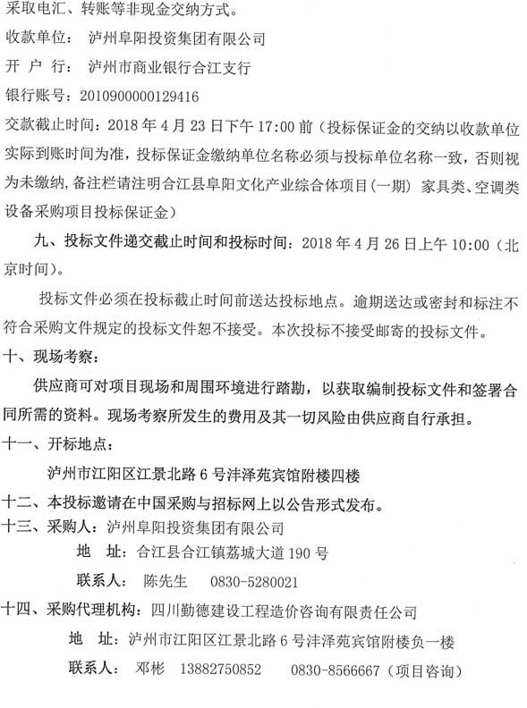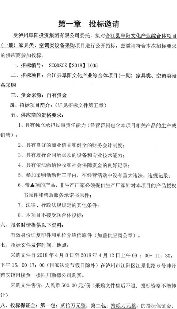 投標邀請:合江縣阜陽(yáng)文化產(chǎn)業(yè)綜合體(一期)項目家具類(lèi)、空調類(lèi)設備采購