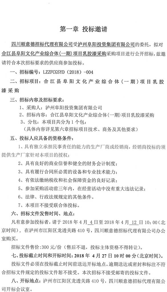 投標邀請:合江縣阜陽(yáng)文化產(chǎn)業(yè)綜合體(一期)項目乳膠漆采購
