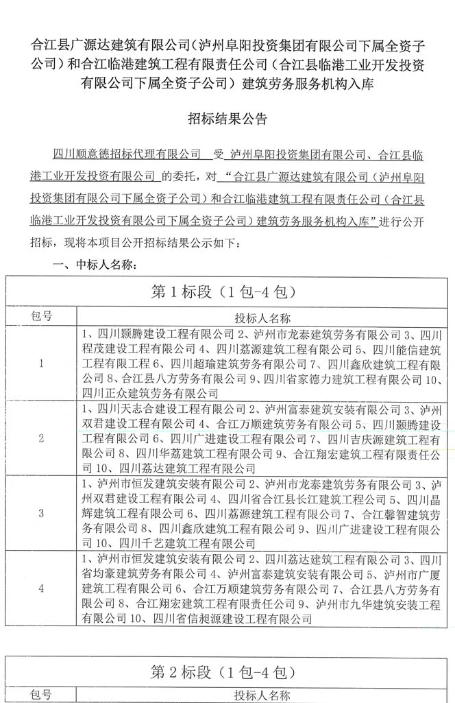 公告:建筑勞務(wù)服務(wù)機構入庫招標結果公告